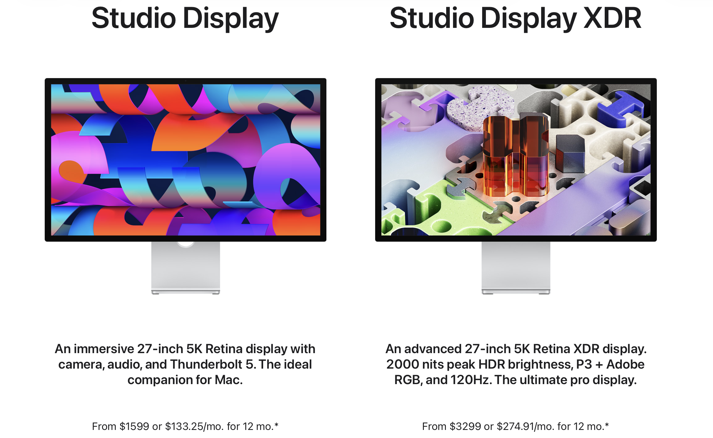 Pricing stayed the same for the Studio Display at $1599 while the Studio Display XDR comes in at $3299.