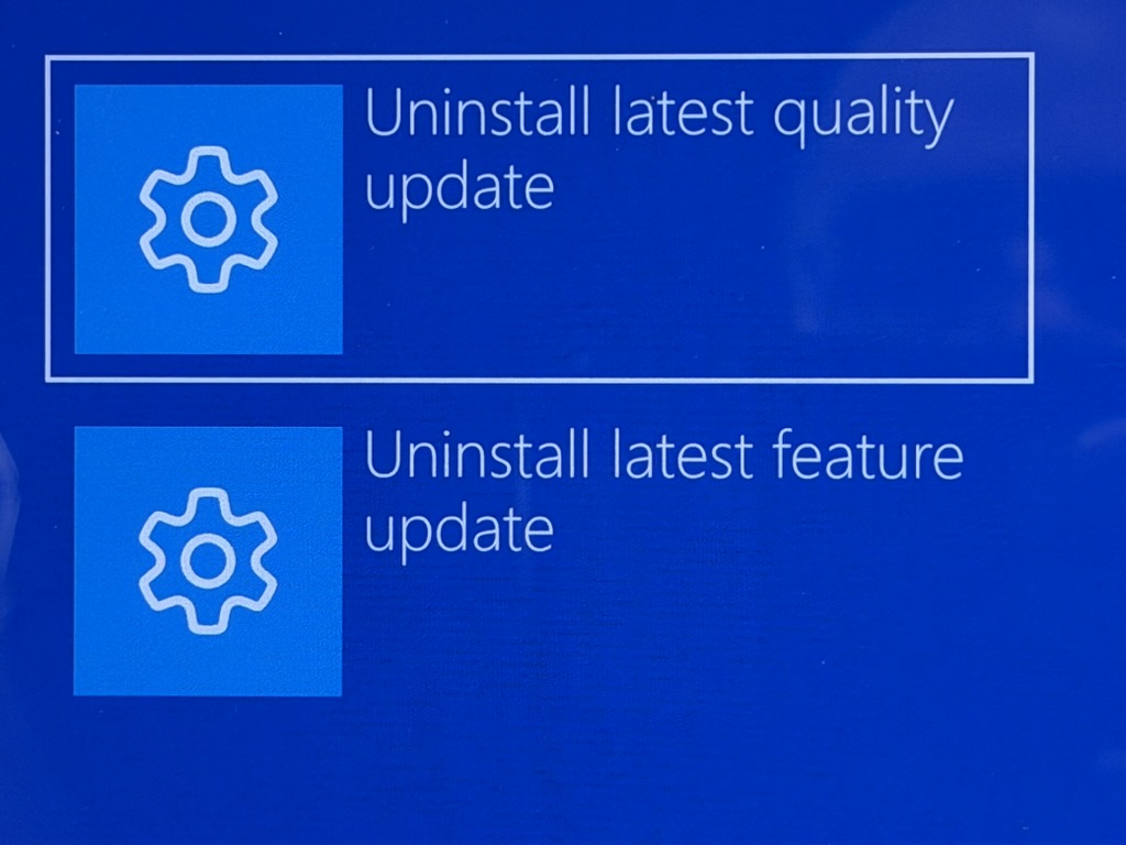 If you’re unable to boot your system and you end up in Recovery, you have the option to uninstall the latest Quality Update. Once in Recovery, go to Troubleshoot > Advanced Options > Uninstall Updates
