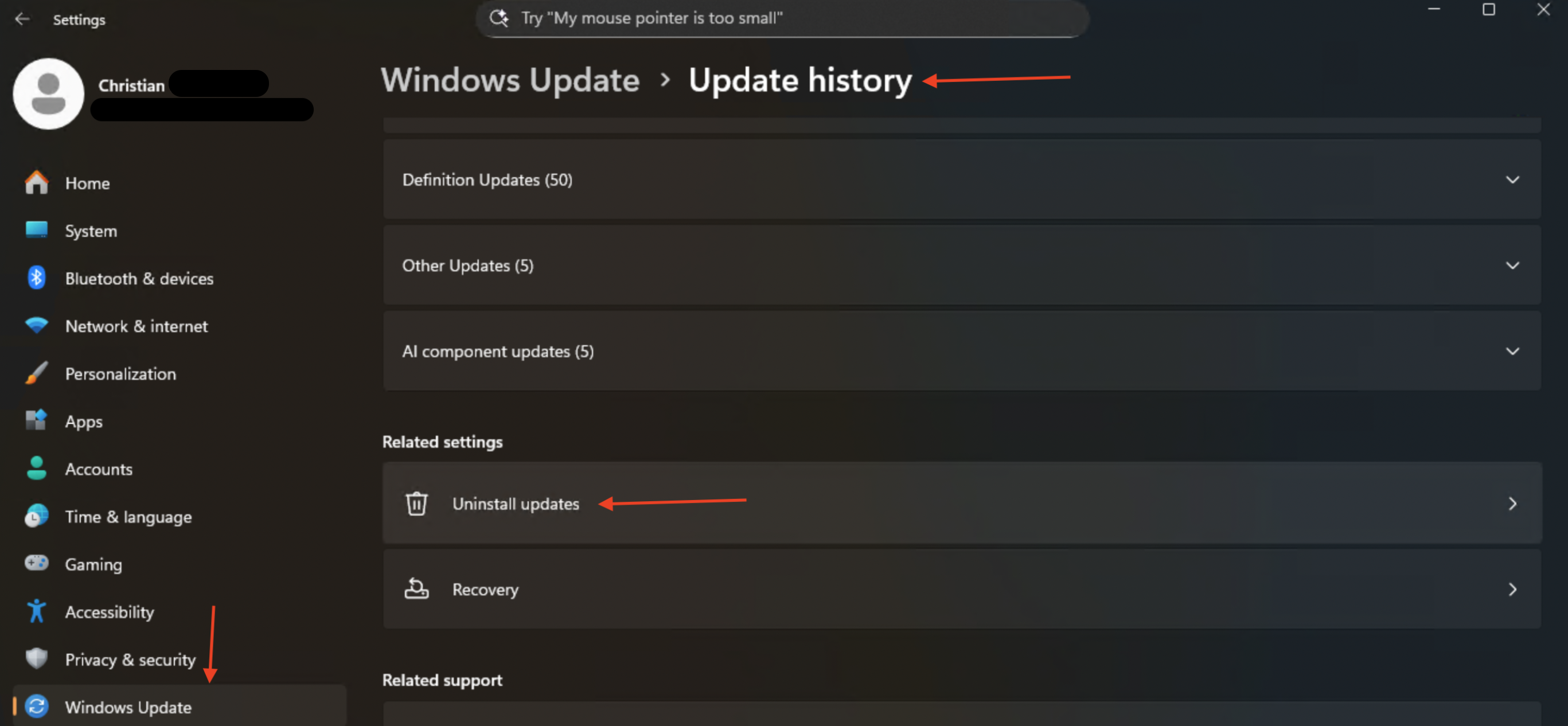 Please note: Microsoft is actively removing this update if it checks for new updates as of 01/24/2026. It’s possible this may automatically resolve for you without intervention. The instructions below can be used for future updates as well. Just be sure to check for the update number.